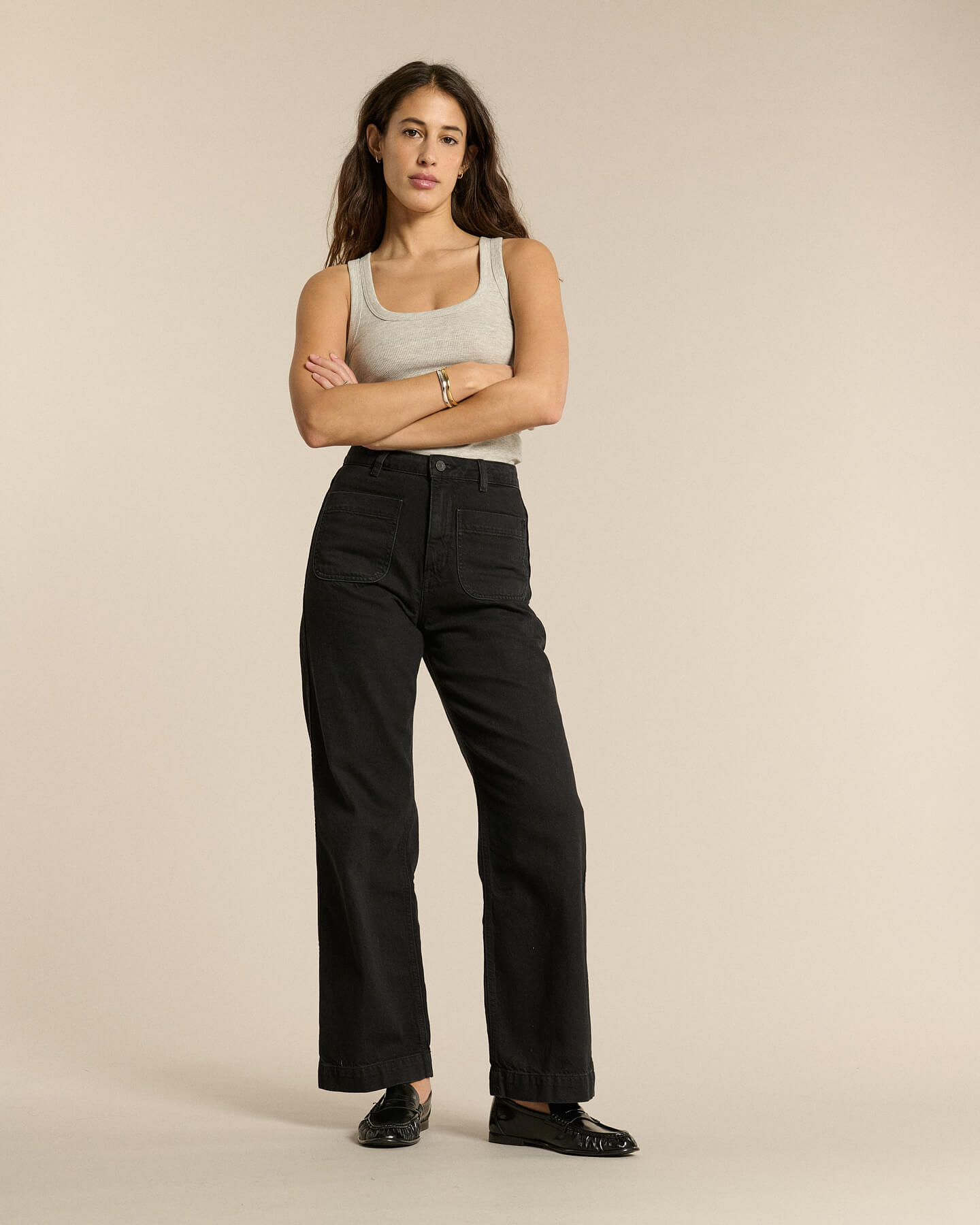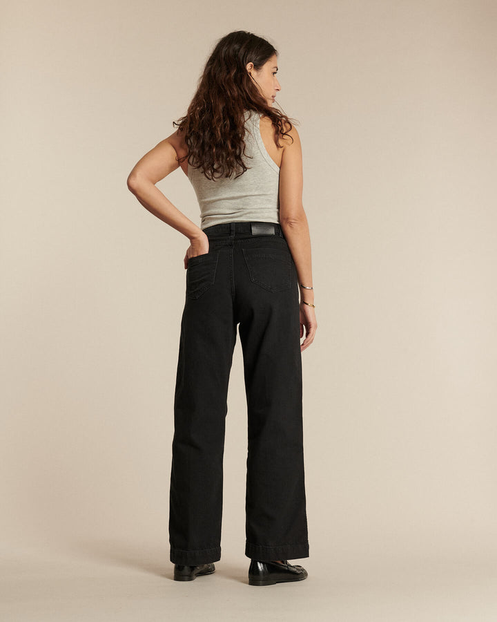 - Coupe taille haute jambe large très flatteuse pour élancer la silhouette