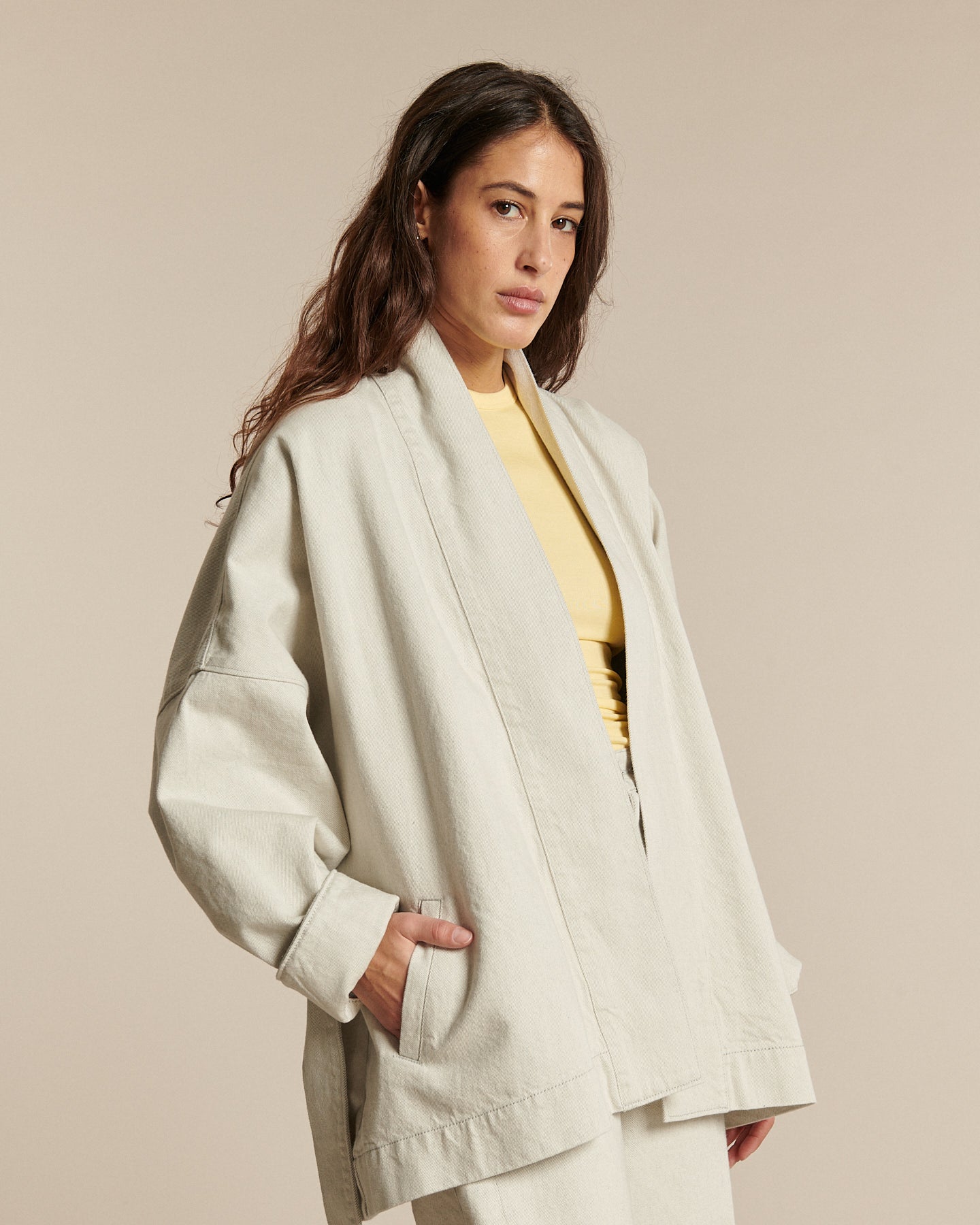 BALI, la veste en jean façon kimono.